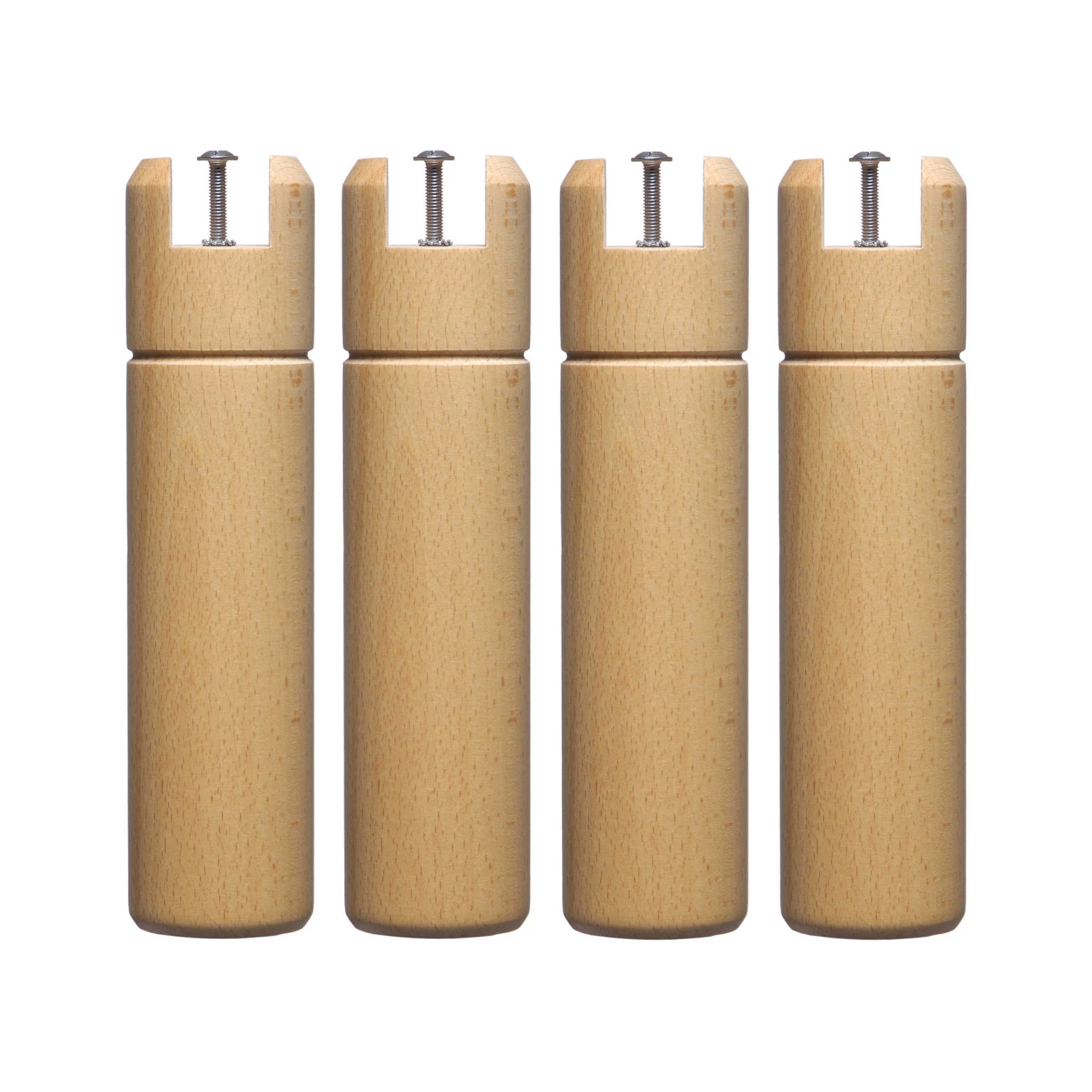 4 pieds cylindriques pour cadre à lattes bois naturel de la marque Someo fabriqués en France. Ces pieds vous permettront de placer votre cadre à lattes à la hauteur parfaite pour un confort optimal. Grâce à leur structure en bois massif, ces pieds vous assurent durabilité et qualité robuste. Le filetage des vis est de 6 mm. L’encoche est un carré de 3 centimètres de côté afin d’insérer une grande majorité de cadres à lattes du marché. Les vis ainsi que la clé de montage sont incluses avec les pieds.