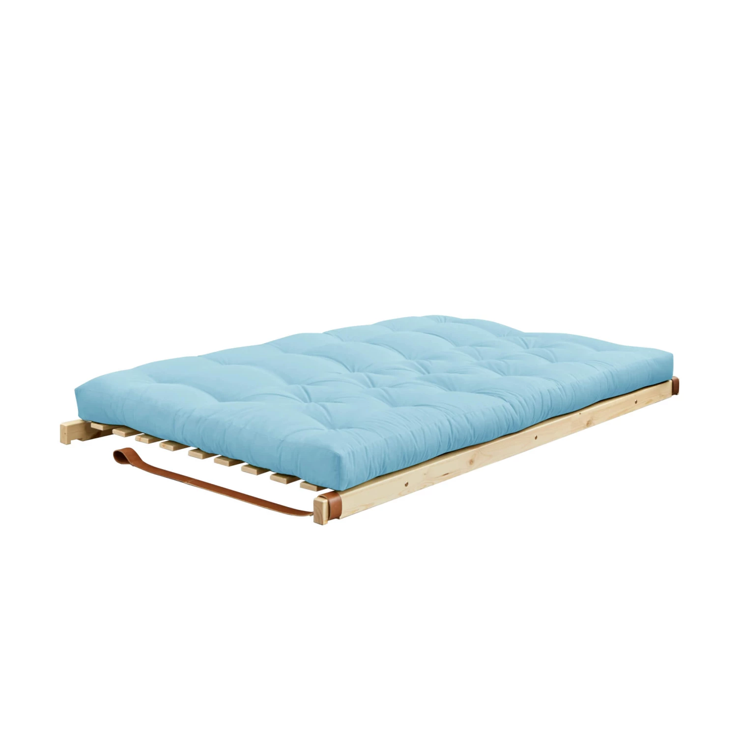 Disponible avec plusieurs coloris de matelas futon : bordeaux, anthracite, gris, écru, jaune, naturel, bleu ciel, marron, vert et bleu pétrole.