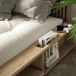 Ce meuble moderne est donc accompagné d’un matelas futon 130×190 dont le coutil est composé à 70% de coton et de 30 % de polyester. Il contient 4 couches de laine ainsi qu’une couche de mousse de 4 cm pour une épaisseur totale de 12 cm. Cette banquette procure un style très tendance et naturel dans votre intérieur.