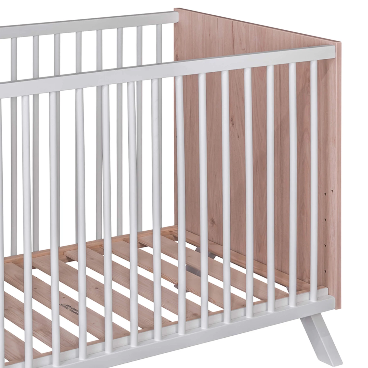 Lit bébé en bois massif style scandinave hêtre et blanc 60×120