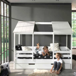 Lit Enfant 90×200 composé de bois MDF laqué blanc. La tête de lit d’une hauteur de 80 cm ainsi que le pied de lit sont arrondis et dispose d’une sculpture décorative en forme de cœur. Idéal pour les petites filles. Des inserts métalliques aux angles permettent l’accueil d’un cadre à lattes (le matelas et le cadre à lattes sont tous les deux en option, non inclus). Meuble livré en kit.