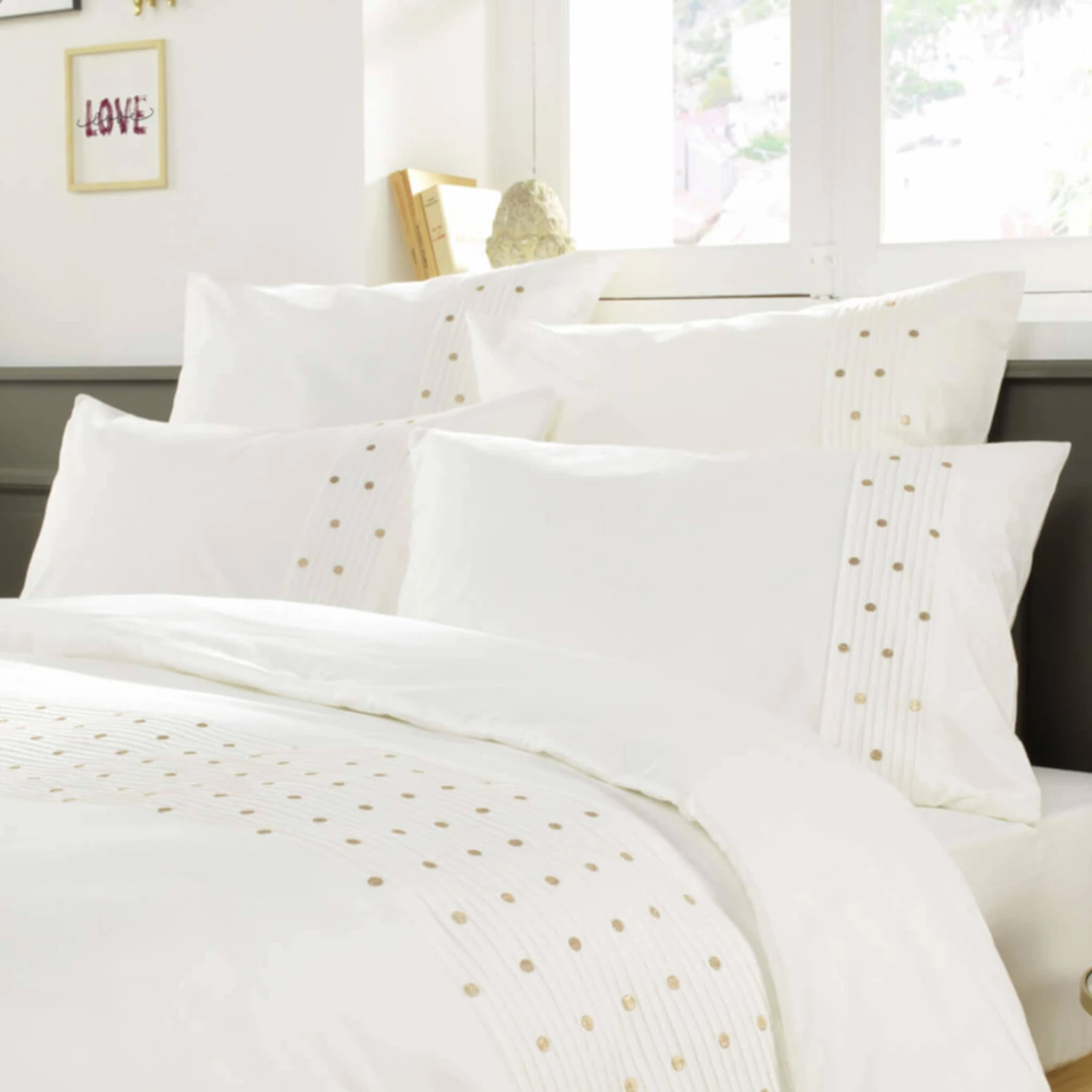 pois dorés brodés, les taies