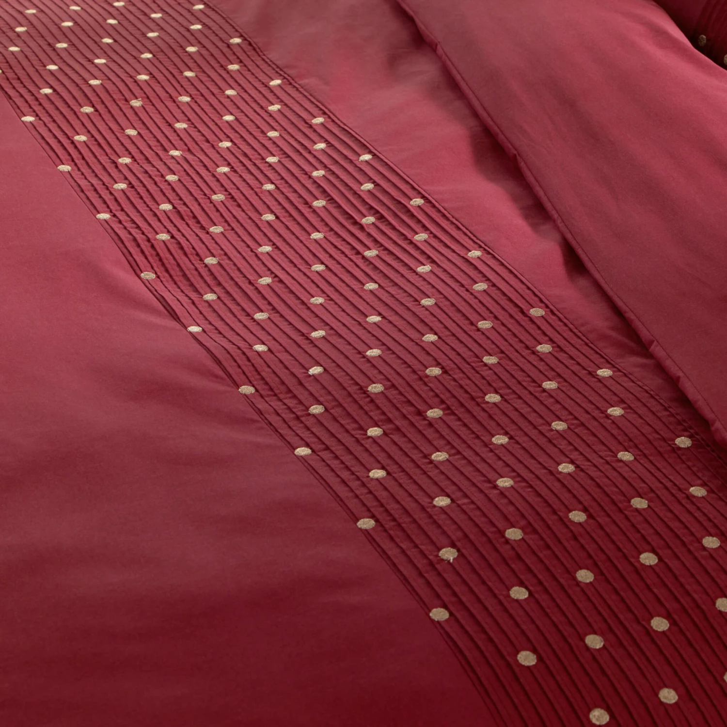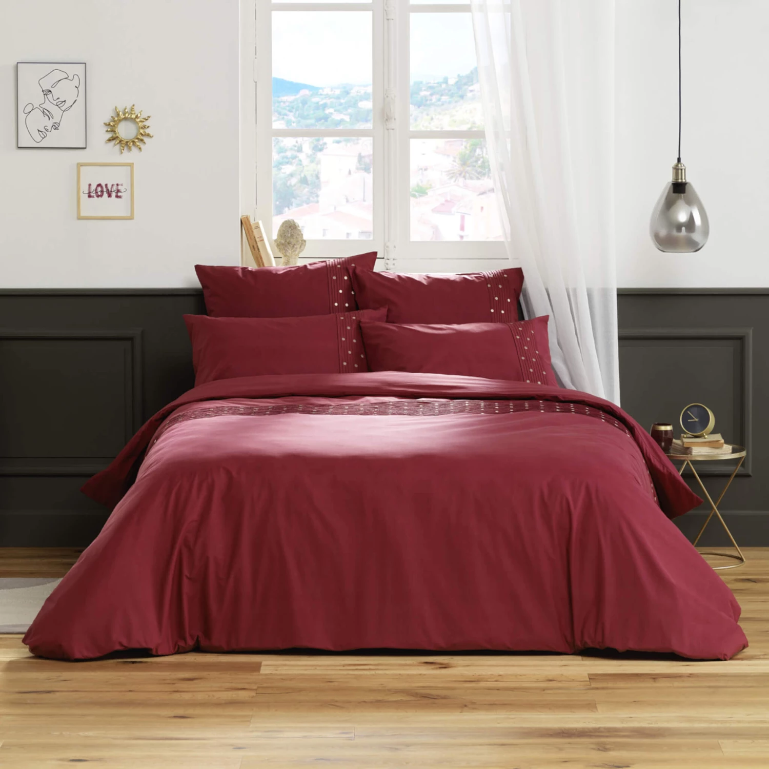 Parure de lit brodée plis religieuses bordeaux. Avec
