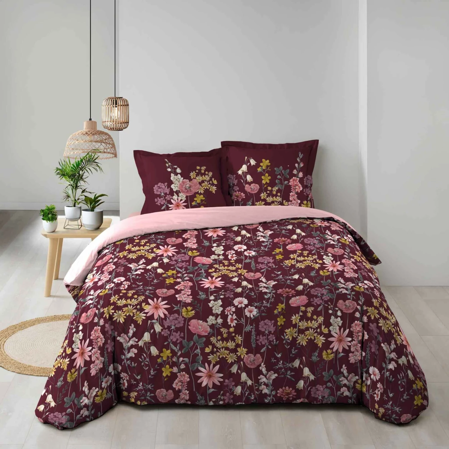Optez pour la parure de lit Florabella, de la marque Douceur D’intérieur. Le motif floral de cette parure s’inscrit dans un style tendance et moderne et s’adaptera parfaitement à votre décoration de chambre. La couleur bordeaux apporte la touche finale à la beauté de la parure de lit.