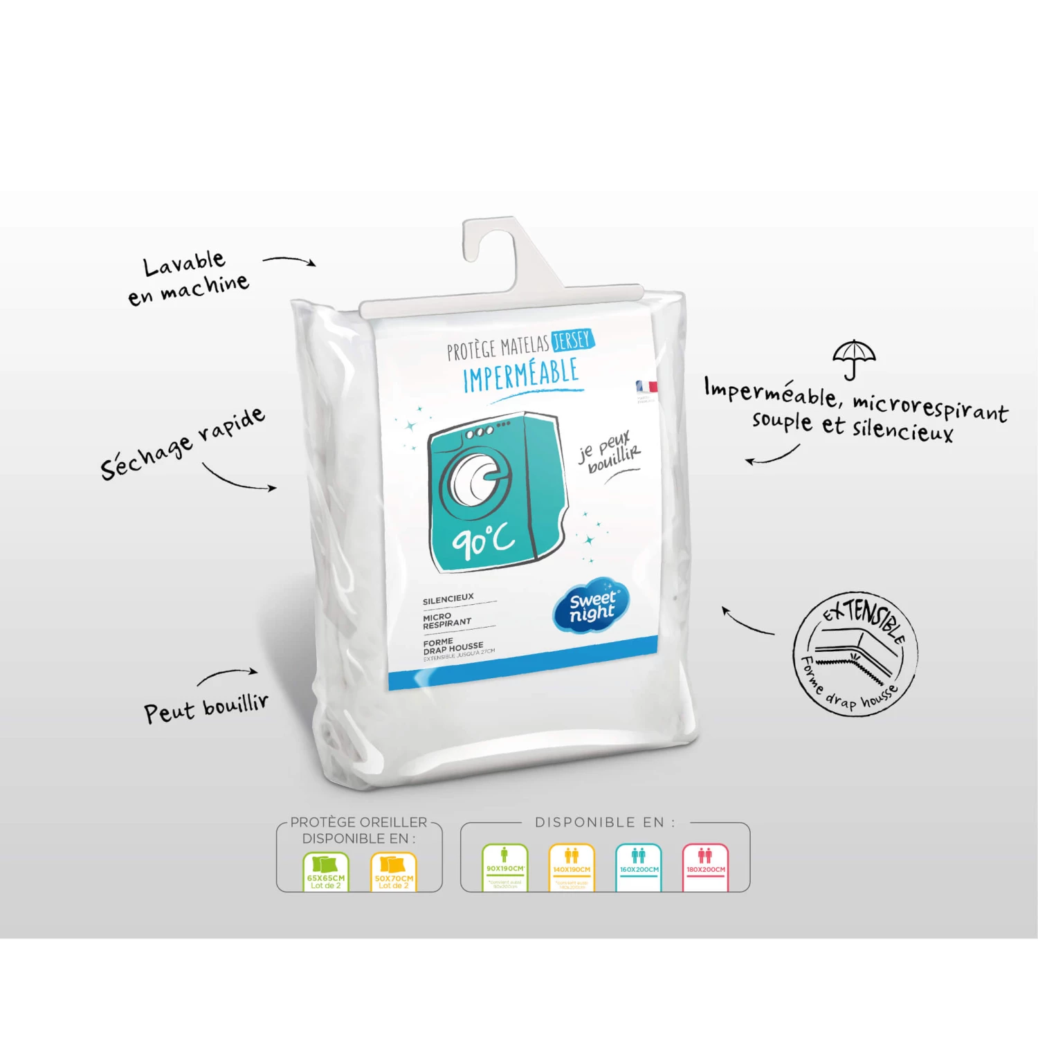Protège matelas Alèse Imperméable Micro-Respirante Souple Silencieuse. Ce protège matelas est un atout idéal pour profiter de nuits paisibles et agréables. En effet, il se distingue par sa matière imperméable et son caractère micro-respirant, qui permet d’évacuer rapidement l’humidité et de vous maintenir au sec. Ce protège matelas vous assure ainsi fraîcheur et hygiène pour un confort optimal. Sa forme drap housse extensible permet de s’adapter aux matelas jusqu’à 27 cm d’épaisseur et jusqu’à 37 cm en 180×200.