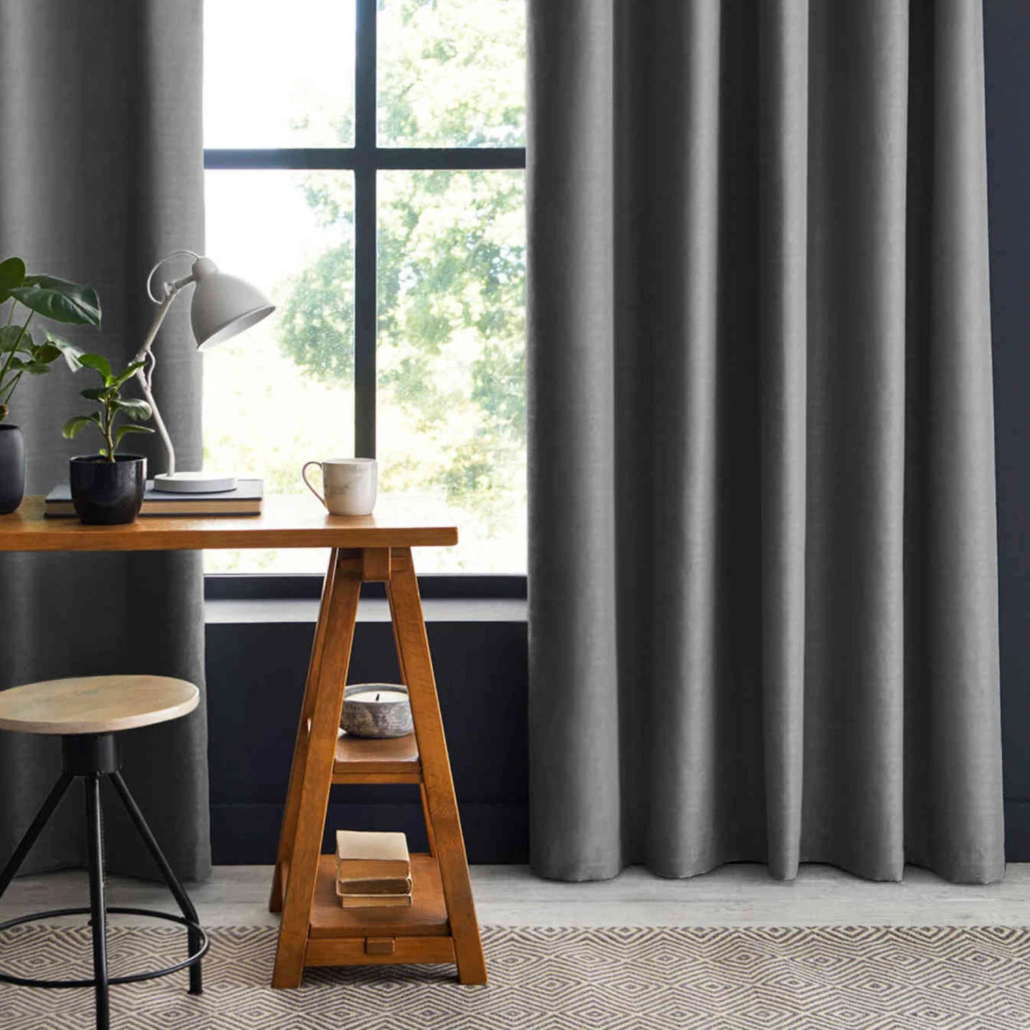 Rideau occultant anthracite à œillets. Ce