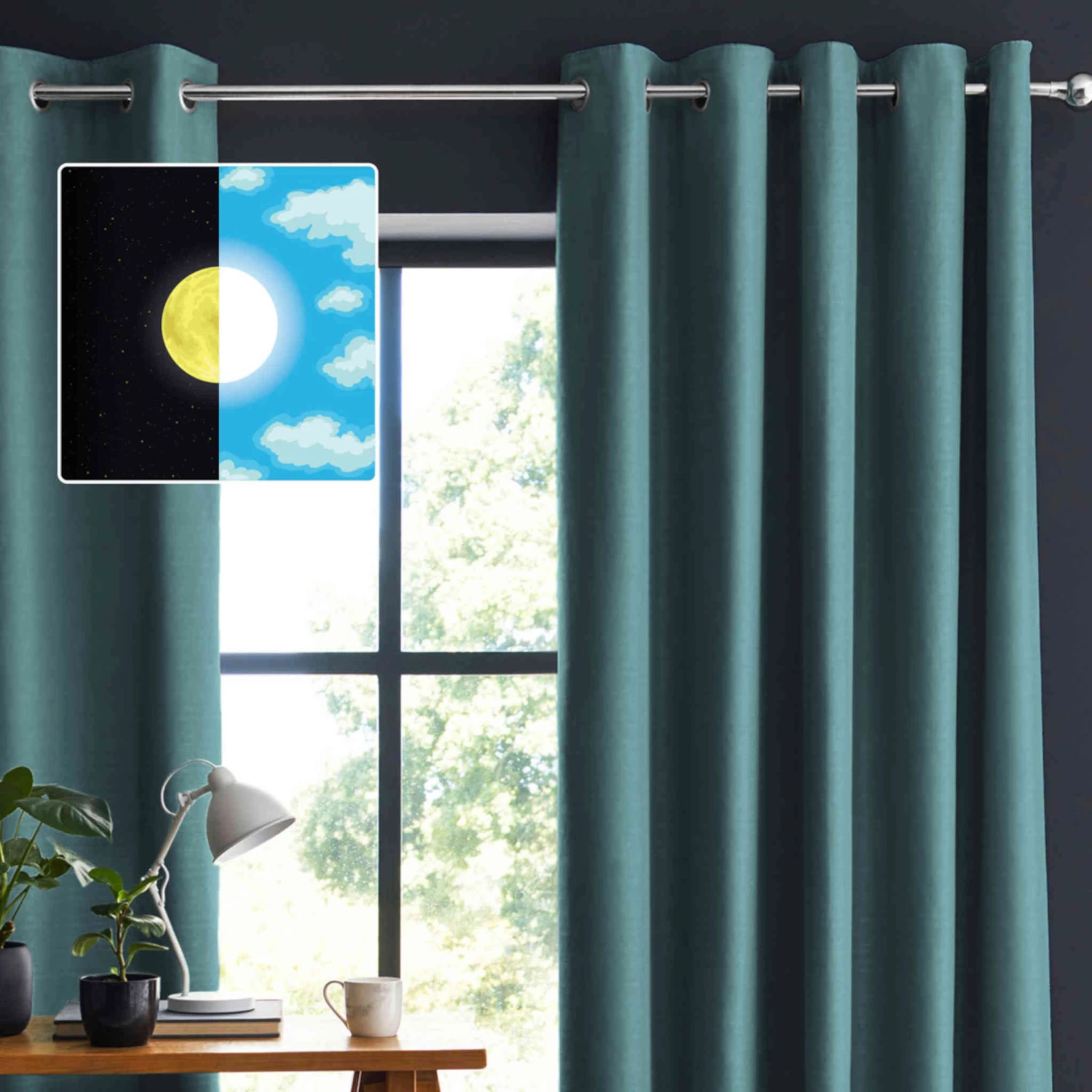 facilement à une tringle (non fournie). Ce rideau bleu canard
