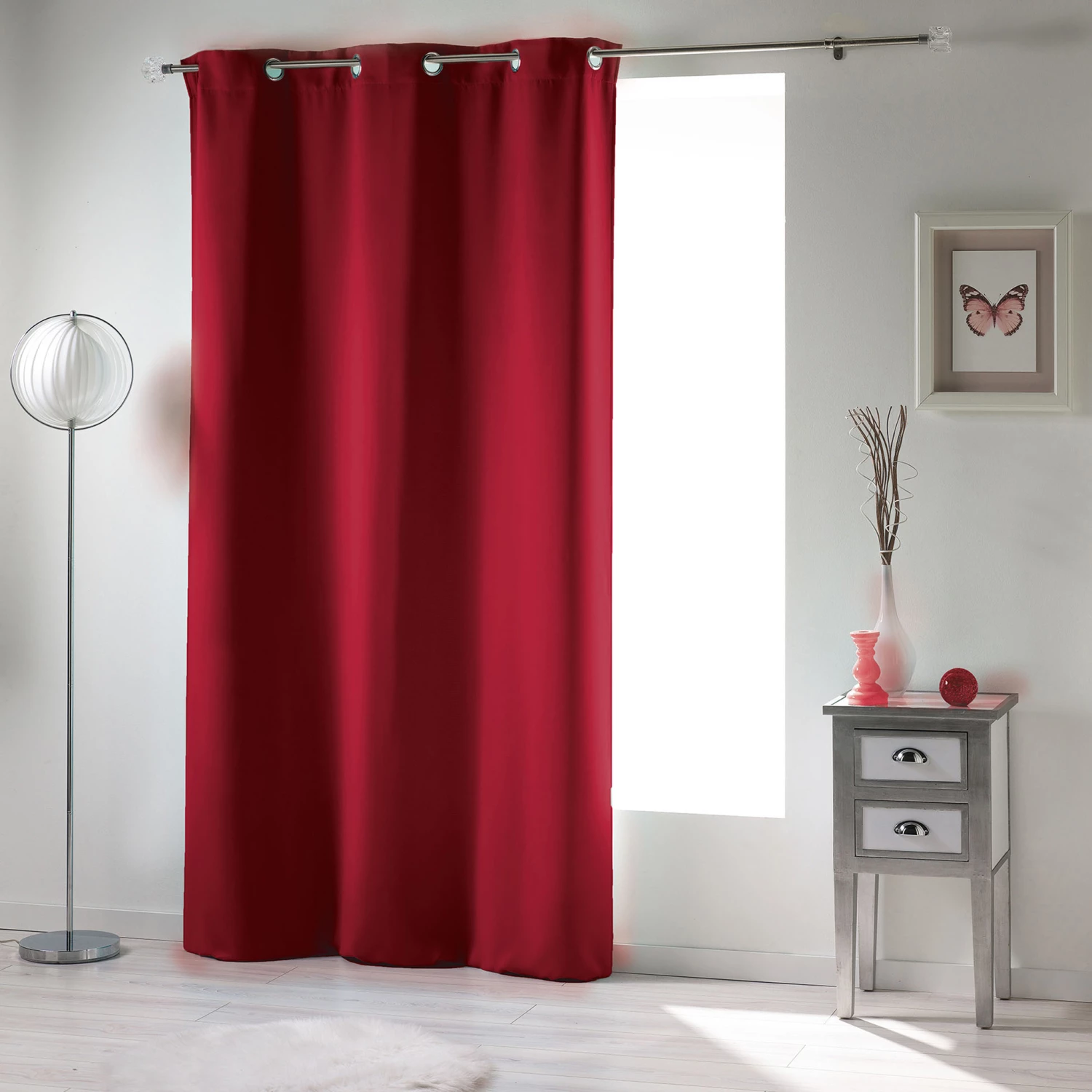 Rideau occultant uni, Douceur d’Intérieur, de coloris rouge et de dimensions 140×240 cm. Très utile, ce rideau vous isole du bruit, du froid, de la chaleur et permet aussi de stopper la lumière. Parfait pour n’importe quelle pièce de votre maison, il possède des œillets en inox facilitant ainsi sa pose sur les tringles à rideaux. Son tissu est 100% polyester.