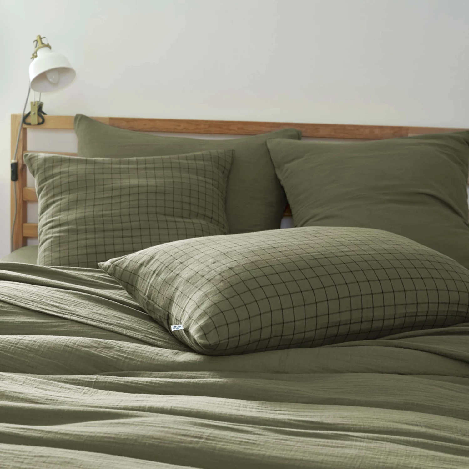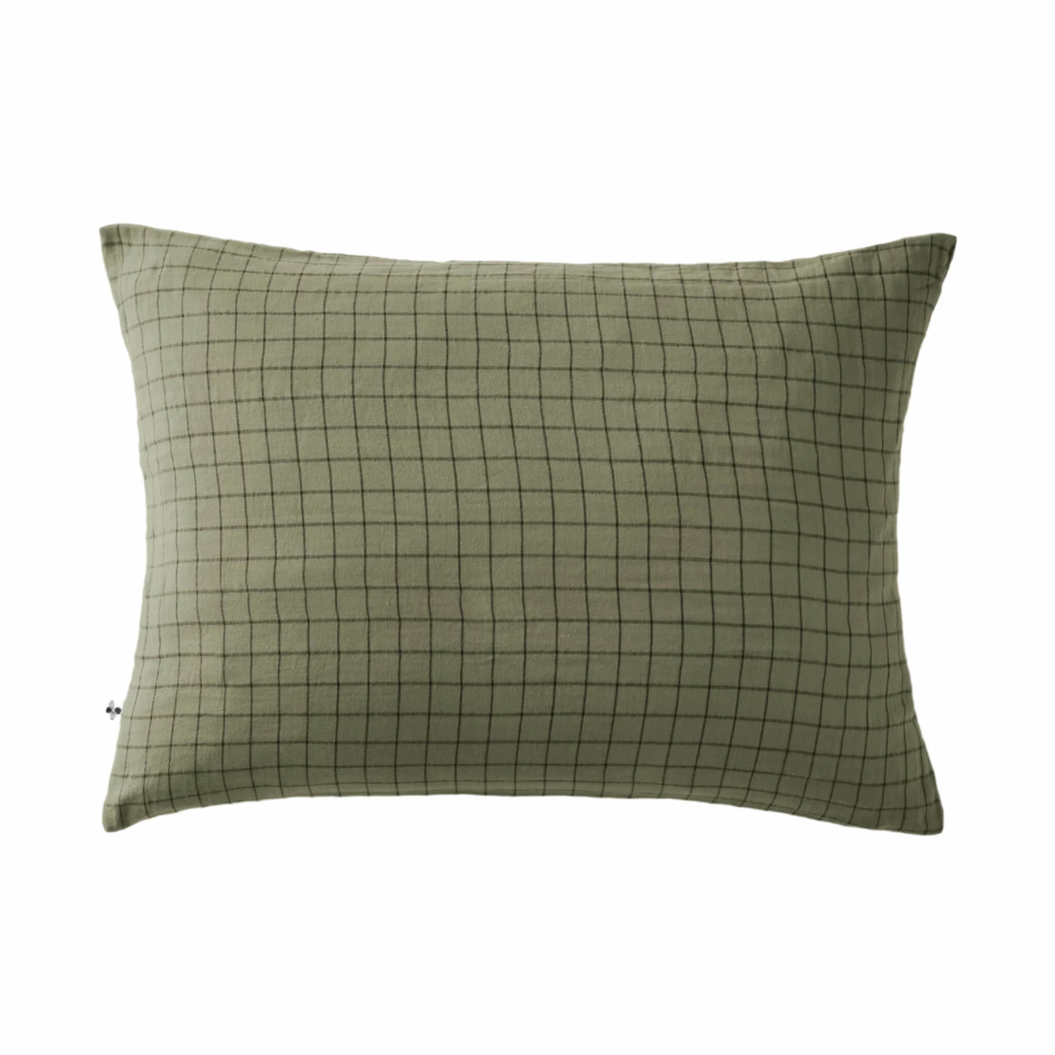 Taie d’oreiller à carreaux double gaze de coton kaki